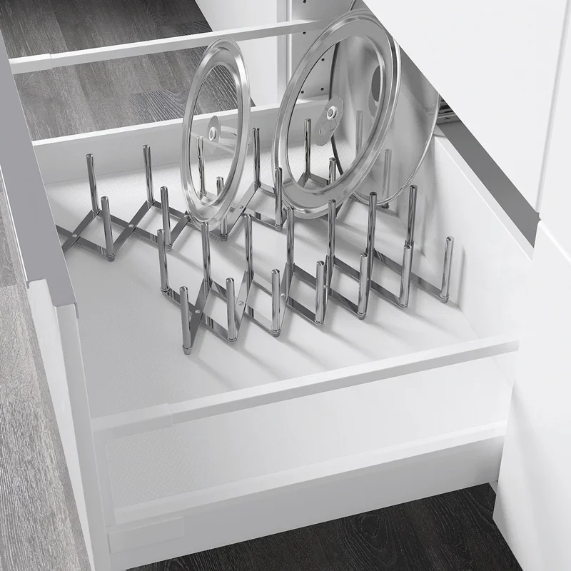 بصورت فنری قابل تنظیم و سایز شدن است . برای قرار دادن دربهای قابلمه و ماهیتابه ها درون کابینت استفاده میشود .