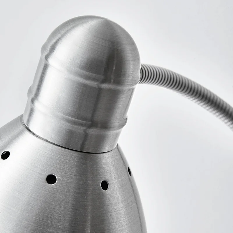 از جنس آلمینیوم ، قابل استفاده به عنوان چراغ مطالعه یا اباژور.لامپ مورد نیاز با هولدر بزرگ E27 است .متحرک بودن قسمت بالایی چراغ جهت تنظیم زاویه نور.