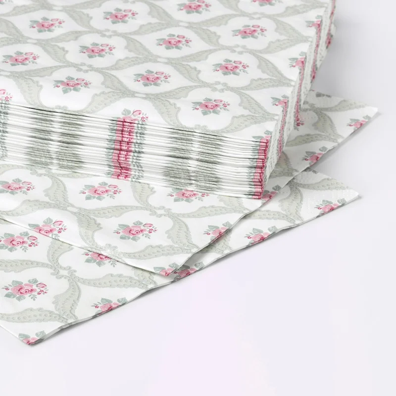 طرح جذاب گل رز بسیار با کیفیت ، زیرا متشکل از 3 لایه است . مناسب برای استفاده در میهمانی های رسمی . سایز هر دستمال سفره 30x30 سانتیمتر است . هر بسته شامل 30 عدد دستمال سفره است.